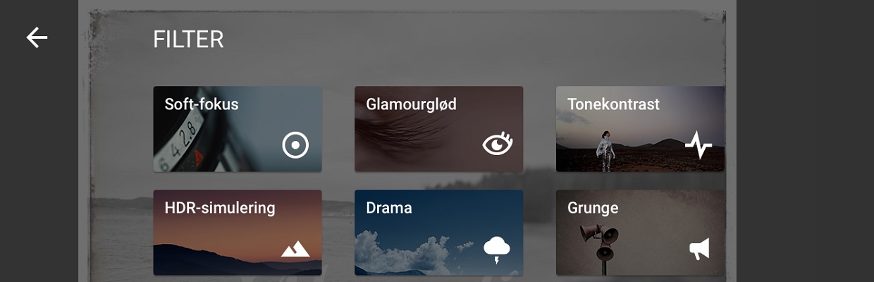 Er bildet du nettopp tok med mobilen litt kjedelig? Hva med å piffe det opp med et filter, sort/hvitt, en pen ramme, eller med et spesielt område i fokus? Kanskje er det litt for lyst, eller litt for mørkt for din smak.