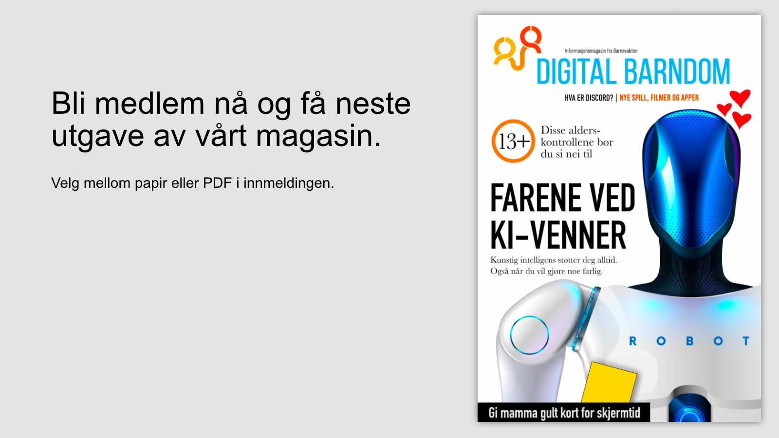 KI finnes nå i sosiale medier, skole, søkemotorer, telefoner, leker og KI-kjærester. Det er mye nyttig og moro med KI, men KI betyr også risiko som foreldre bør være klar over.