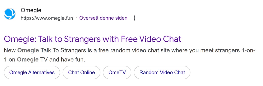 For eksempel: Monkey og OmeTV. Bildet under er fra nettsøk etter Omegle: