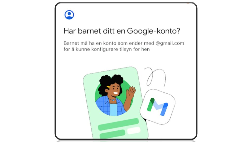 Family Link settes opp automatisk når man angir en brukerkonto for barnet på et nytt nettbrett eller en ny mobil (Google-konto under 13 år).