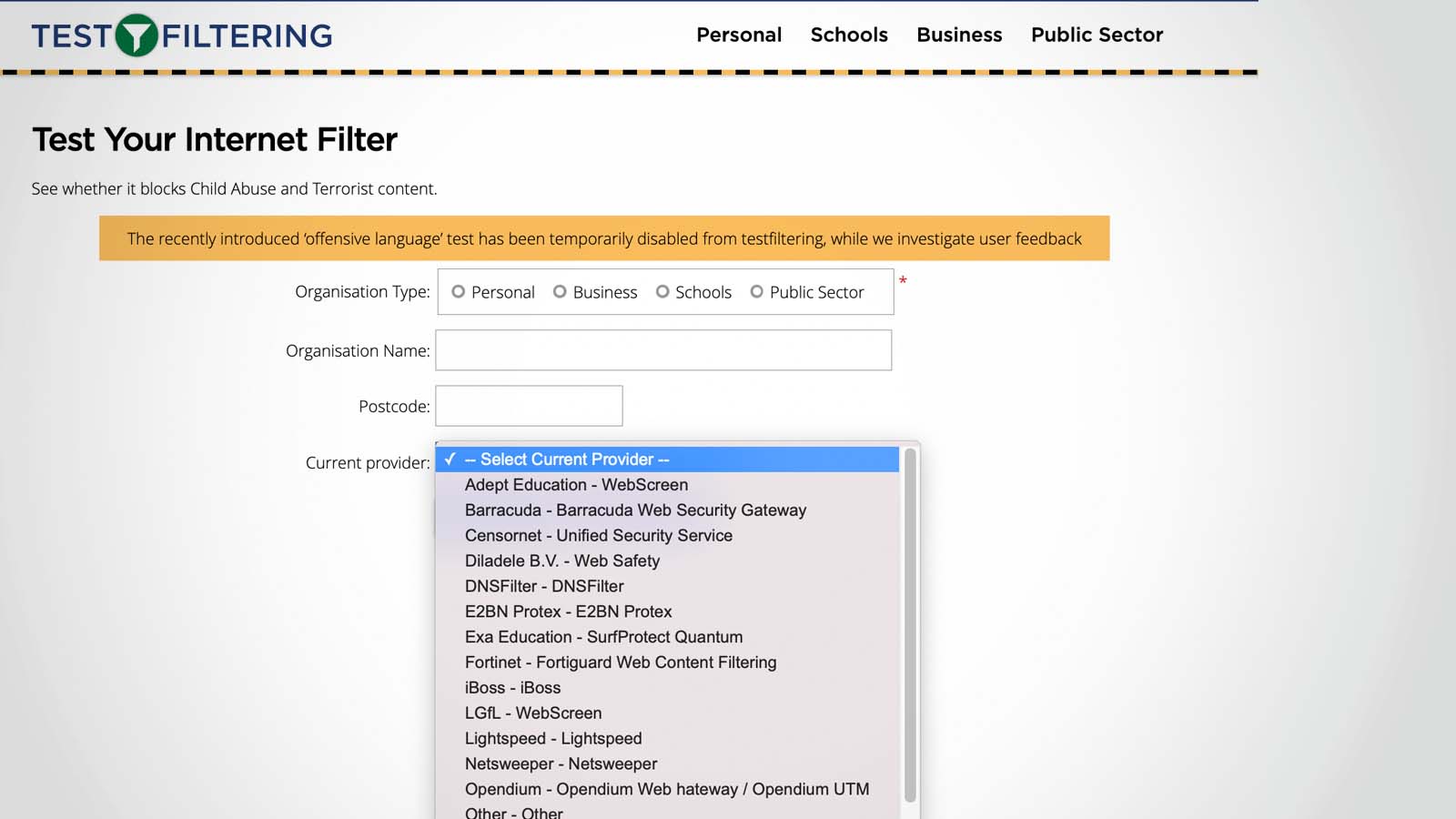Man kan teste skolens filter via en av organisasjonens nettsider: