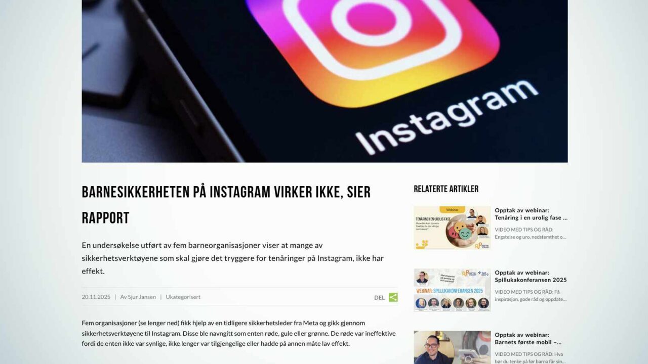 En rapport fra flere barneorganisasjoner hevder at tryggheten på Instagram er for dårlig. Meta har sendt Barnevakten en respons.