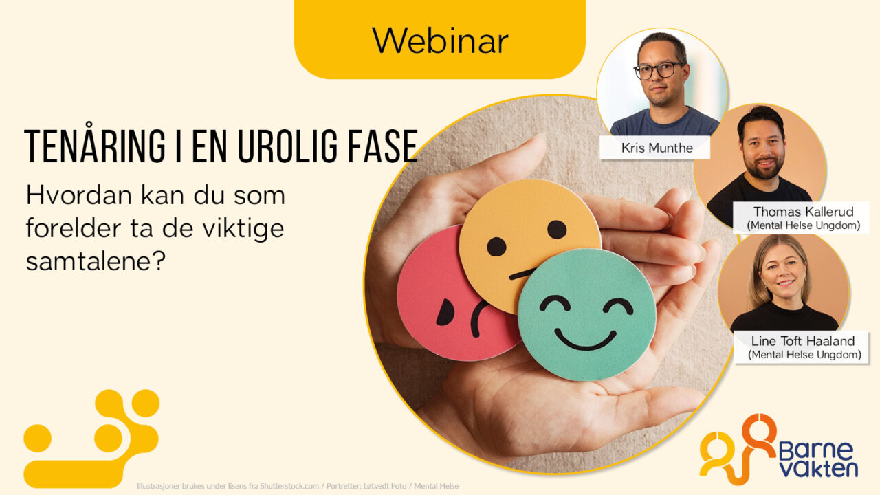 Kris Munthe fra Barnevakten leder programmet og har med seg Line Toft Haaland og Thomas Kallerud fra Mental Helse Ungdom. Sammen vil de dele sine erfaringer fra møter med ungdom og gi tips og råd til deg som forelder.