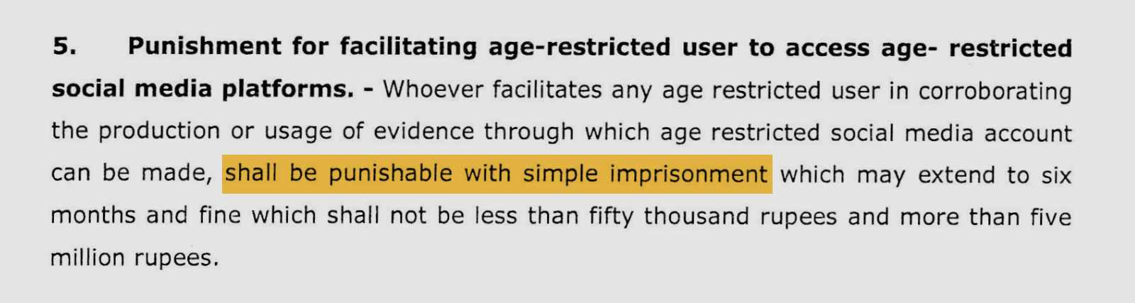 Den strenge straffen i det pakistanske forslaget handlet om de som skaffer bevis som kan gjøre at man får opprettet en konto. Dette kan tolkes som falske pass eller lignende. Men det kan også tolkes til at lillebror ber storebror om å vise ansiktet sitt i en ansiktsaldersjekk som ikke inkluderer ID.