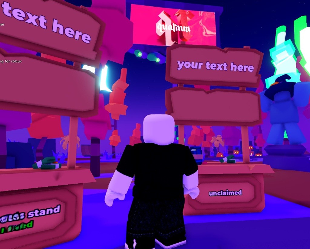 På toppen av boden er det et skilt hvor man kan skrive tekst. For eksempel at man veldig gjerne ønsker seg robux, at man skal bruke robux for å spare opp til noe spesielt og så videre. Men må først lage noe å selge i bodene.
