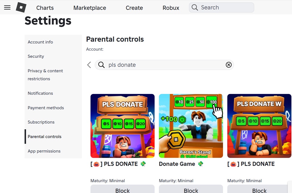 - Dersom du bruker foreldreinnstillingene til Roblox, så kan du blokkere dette spillet på barnets bruker. Trykk deg inn på barnets brukernavn i foreldreinnstillingene, velg «content restrictions» og «blocket experiences». Ved å trykke på plusstegnet kan du søke opp spillets navn og blokkere dette for barnets bruker.