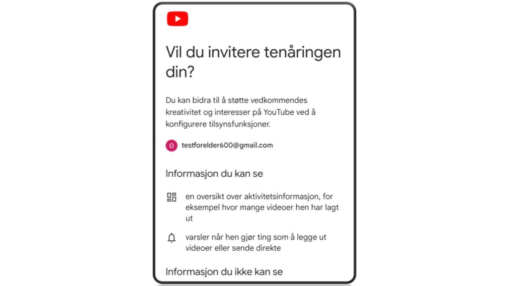 En funksjon gjør det mulig å koble en foreldrekonto til en tenåringskonto. Det er ikke all verden av funksjonalitet som har kommet på plass. Men som forelder kan man få oversikt over kanalen til ungdommen og se når nye videoer blir publisert.