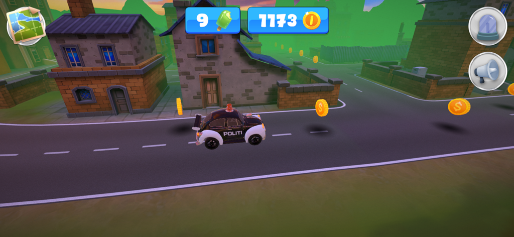 Det er også mulig å gå ut av politistasjonen. Ute i byen fungerer styringen litt annerledes. Her må spilleren trykke og holde inne for at Pelle Politibil skal kjøre til riktig sted. I denne delen av spillet kan man samle flere gullmynter og iskrem i ulik farge. Så her er det bare å kjøre rundt og utforske byen. Spilleren kan skru på blålys og sirene og kjøre rundt som en ekte politibil.
