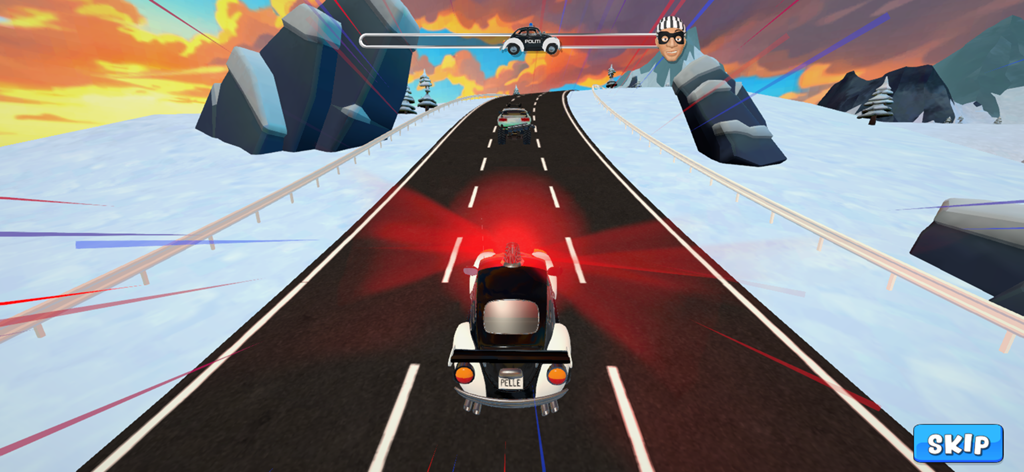 Ingenting i spillet er skummelt og kontrollene er enkle å forstå. Politijakten byr på fart og spenning og bilen kjører av seg selv. Spilleren sveiper for å skifte fil og hoppe over hindringer, noe som gir passe utfordring og mulighet til å samle gullmynter. Blir det for vanskelig, er det en fin mulighet å sitte sammen med barnet og hjelpe til.