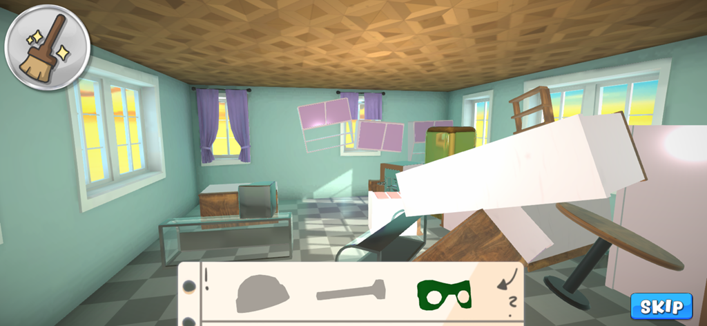 Pelle Politibil har også et hovedkvarter, der nye oppdrag kommer ved at telefonen ringer. Spilleren kjører til åstedet for å lete etter spor. Sporene er som regel en lue, en maske og en hammer. Objektene er gjemt og man må flytte på møbler, kasser og malerier for å finne sporene.