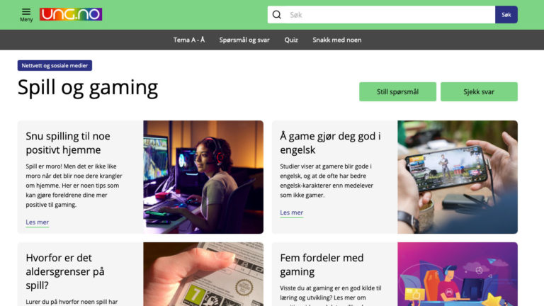 åpne ressursTemaartikler og spørsmål fra ungdom om spill og gaming, med svar fra fagpersoner.
