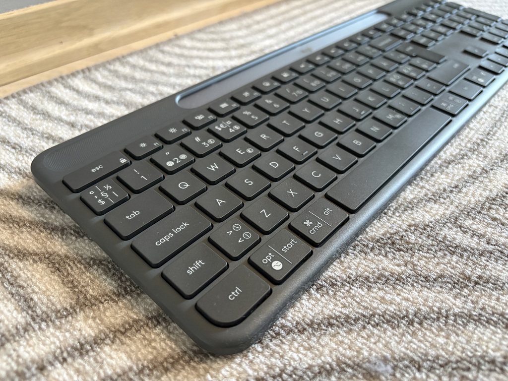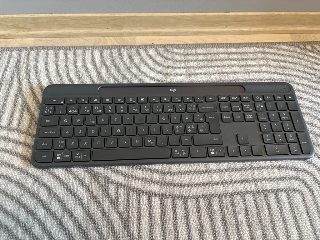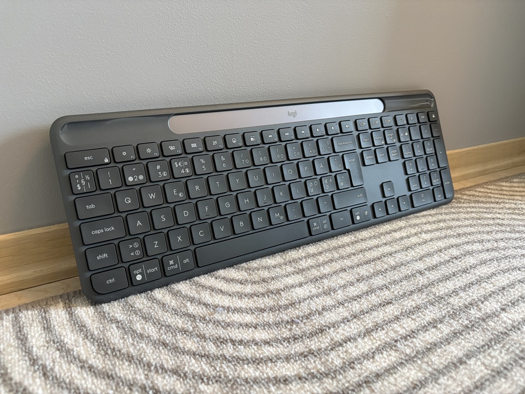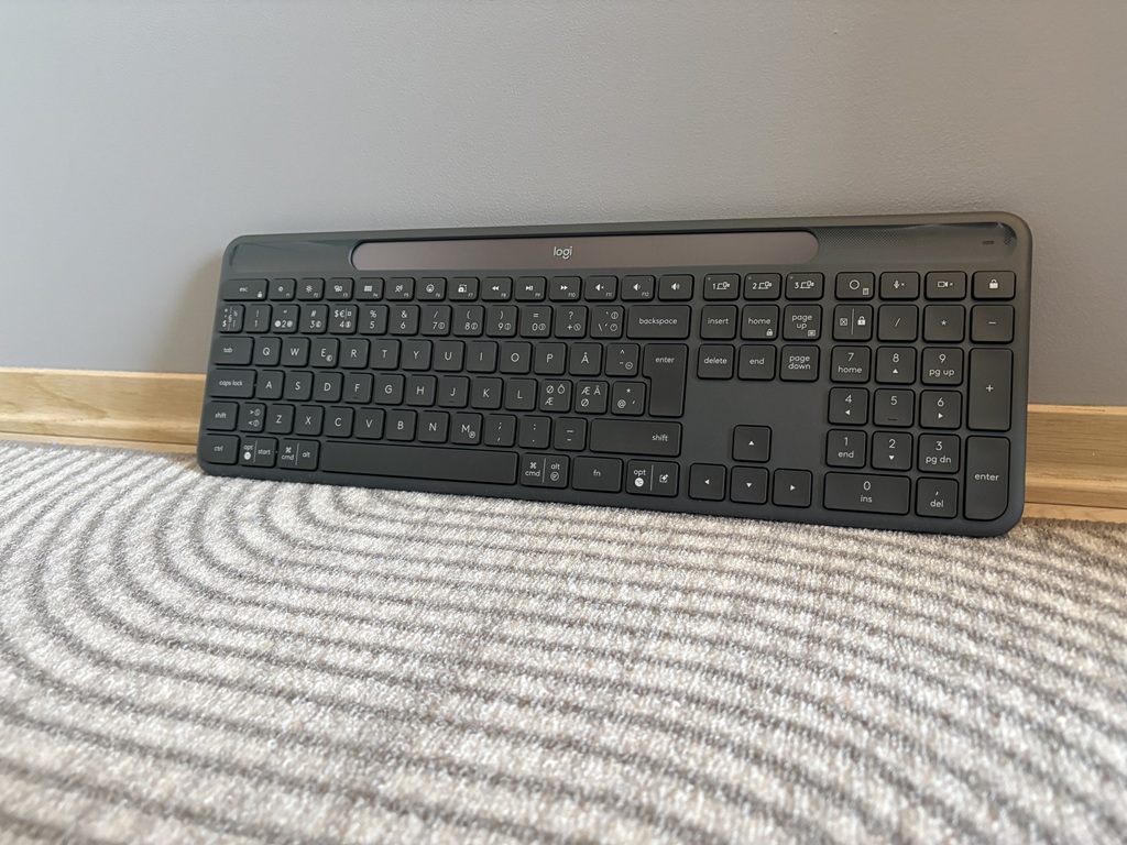 K980 er også et pent tastatur. Det oppleves som slankt, moderne og solid. Tastaturet har en lav profil og en lav støttepute bak som antageligvis er stedet der batteriet ligger. Men ingen klaffer for å heve tastaturet ytterligere.