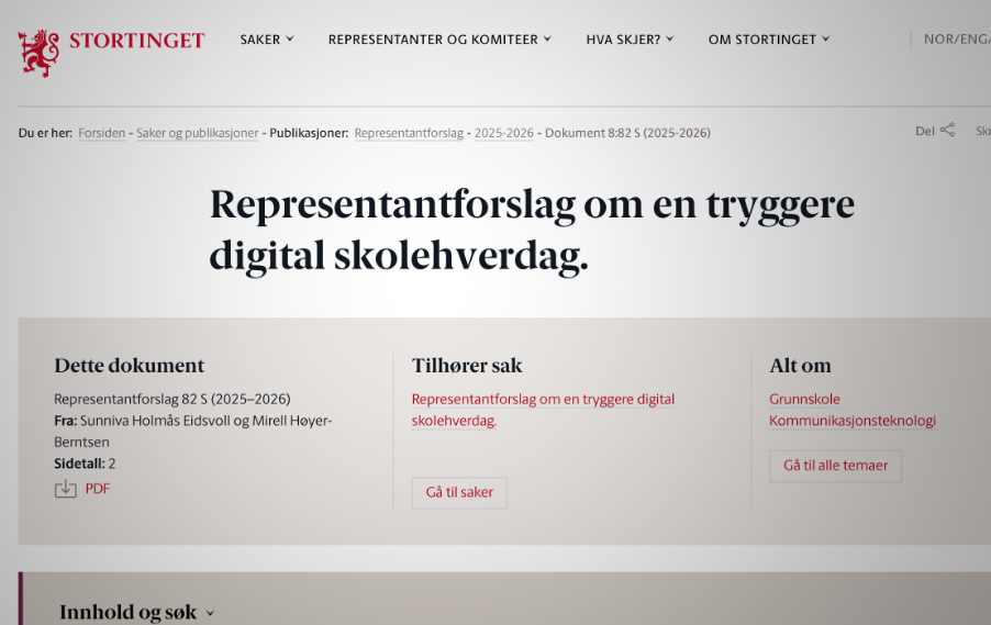 «For eksempel står det kun at skolene «bør» legge inn filtre som blokkerer nettsider hvor formålet er sjekking, dating eller seksuelle tjenester. Dette har resultert i at enkelte kommuner ikke har filtre og blokkering av nettsider med skadelig innhold for skoleelevene. Forslagsstillerne mener at dette er noe skolene må gjøre.»