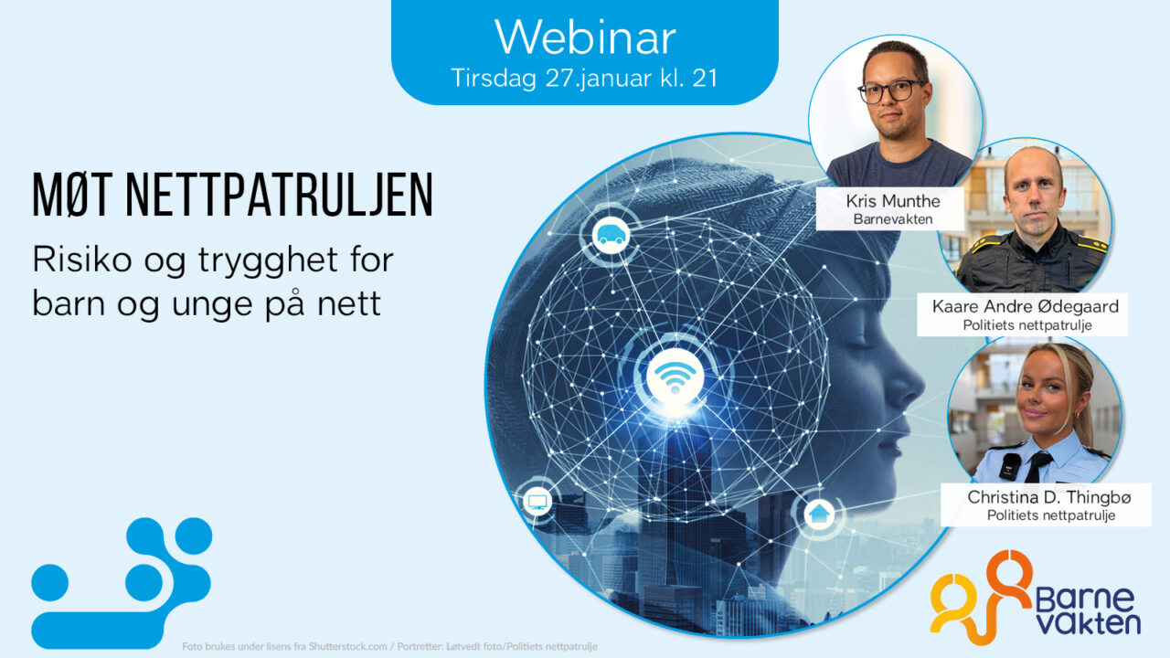 GRATIS WEBINAR 27. Januar: Hva utsettes barn og unge for på nett og hvordan håndtere utfordringene? Møt Barnevakten og Politiets Nettpatrulje. Husk påmelding.